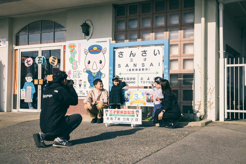 クライマックスは、駅名に「三才」と名の付く三才駅での記念撮影。お子さまの年齢と重なる特別な場所で、今しか残せない一枚を形にします。