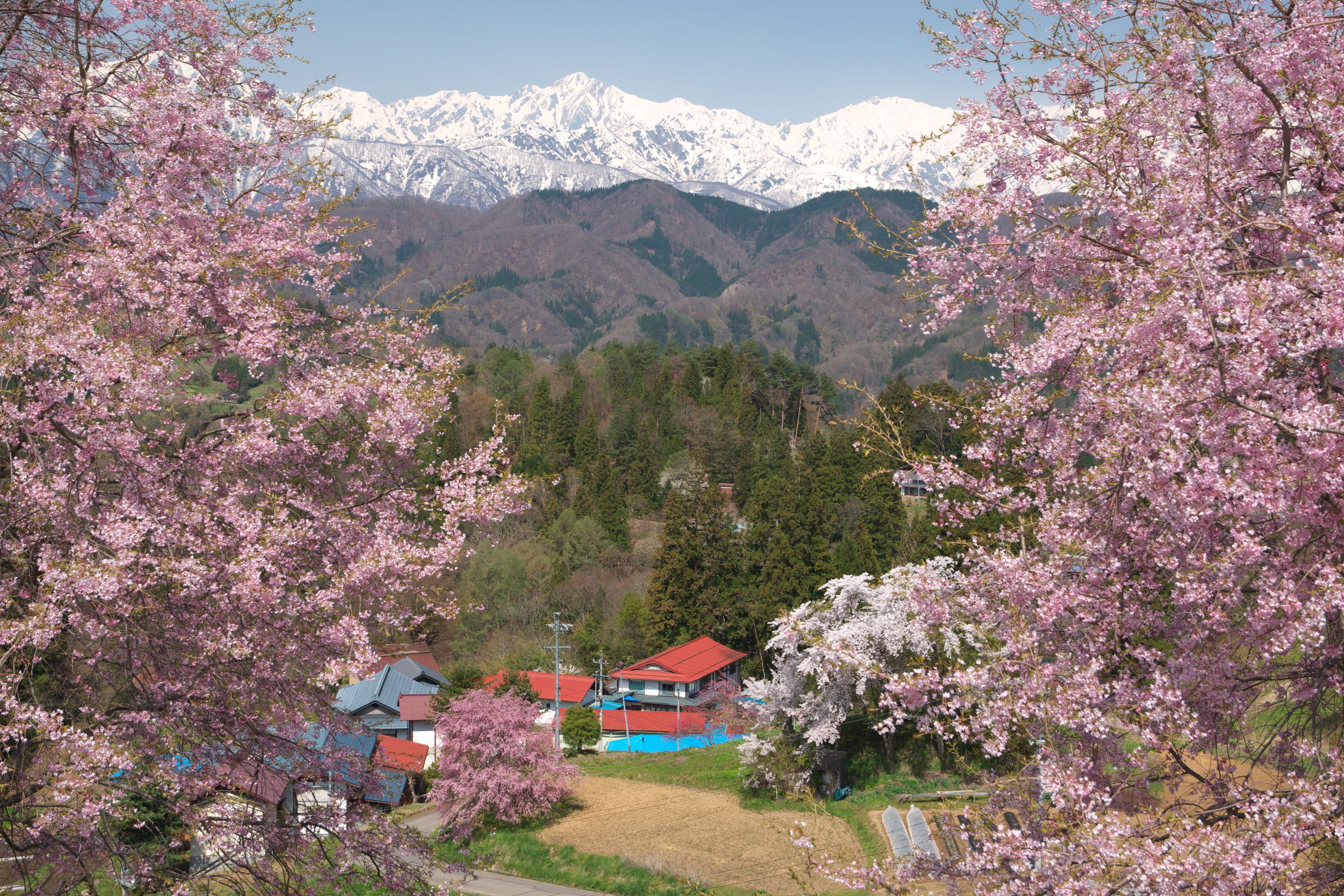 ・小川村桜ウィーク 北アルプスの大パノラマと、春を彩る「立屋・番所の桜」